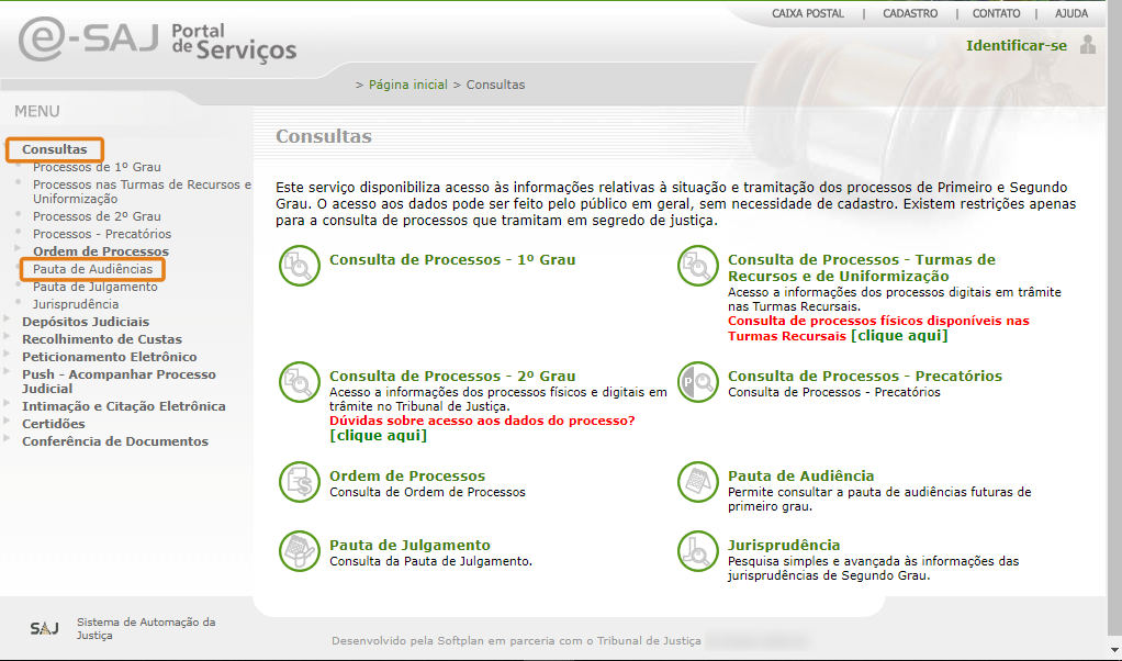 Os advogados e o público em geral conseguem fazer uma consulta no Portal e-SAJ destes processos que possuem audiências marcadas. Isso é possível pois os sistemas, SAJ e Portal estão interligados para alguns Tribunais.
