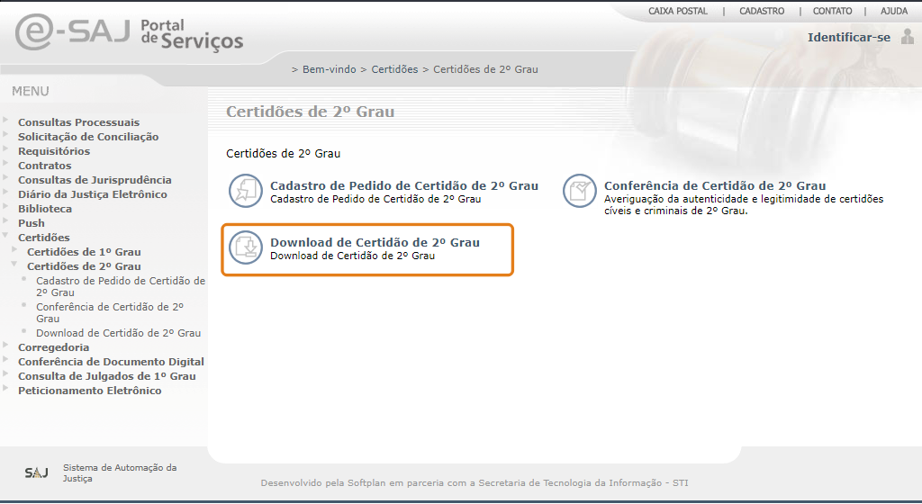 Esse artigo trata do pedido de certidão de 2º grau. Para acessar a aplicação de Certidões não é necessário realizar o login no Portal e-SAJ.